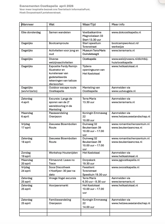 evenementen April Oostkapelle